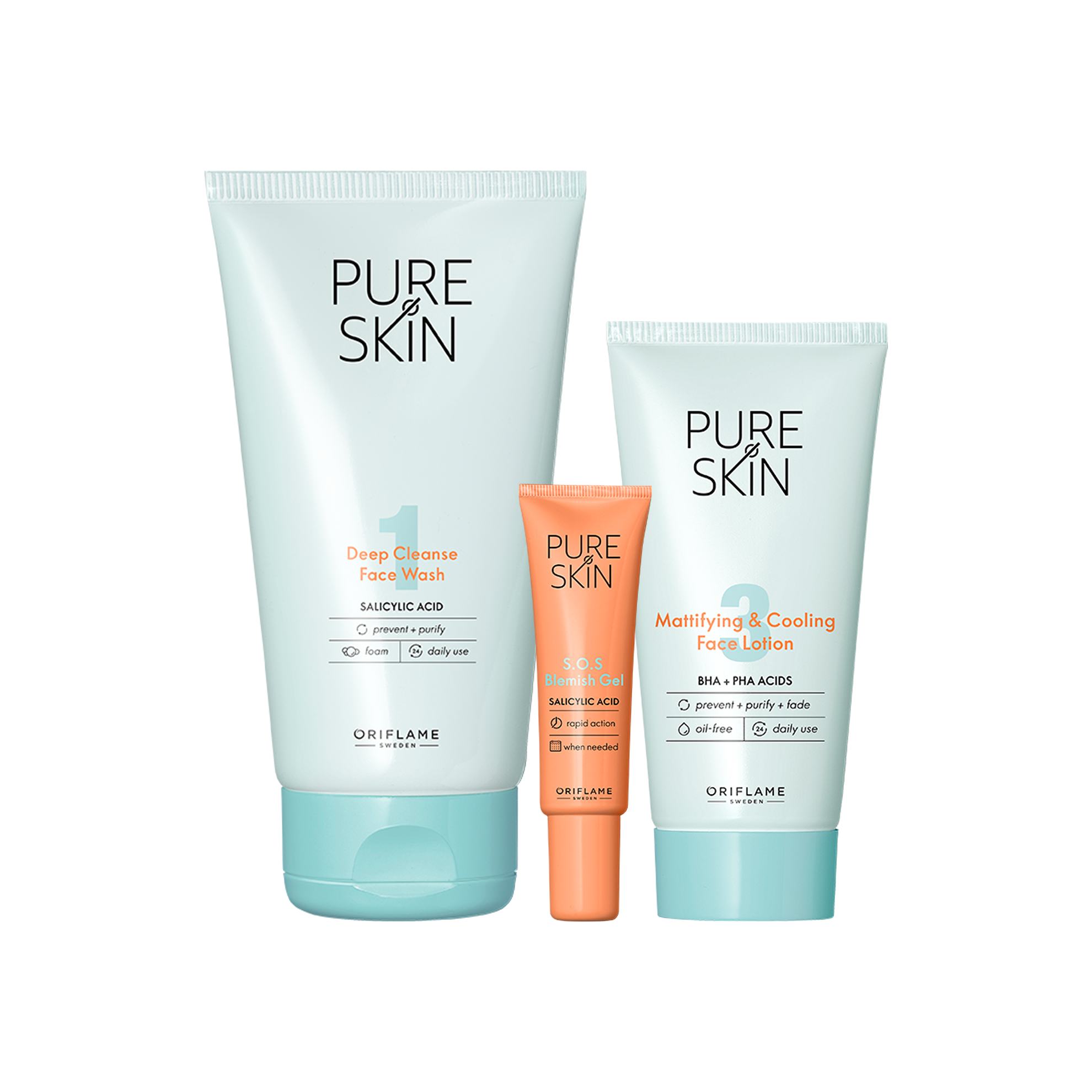 Pure Skin are o gamă largă de produse care vizează petele și punctele negre și ajută la prevenirea apariției coșurilor. Toate produsele Pure Skin sunt antibacteriene și folosesc tehnologie detect combinată cu acid salicilic pentru a elimina celulele moarte ale pielii, a limita producția de sebum și a preveni luciul.